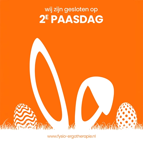 Op maandag 6 april zijn alle vestigingen van Fysiotherapie & Ergotherapie Tilburg gesloten in verband met 2e Paasdag. Vanaf dinsdag staan wij weer voor u klaar.